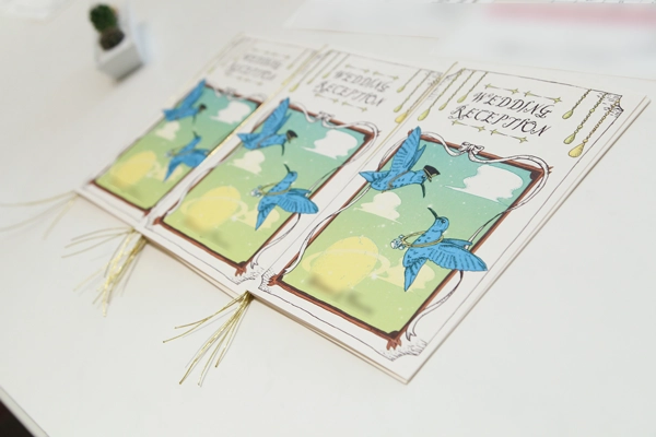 また、ウェルカムボードをはじめ、披露宴の式次第、席札、ウェルカムツリーなど、